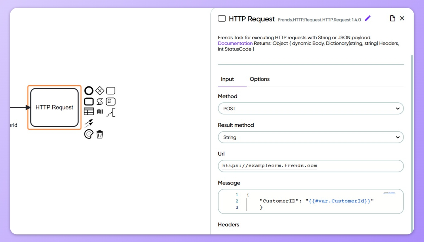 }Resulting variable could then be used in the expression for the headers for a HTTP Request Task.