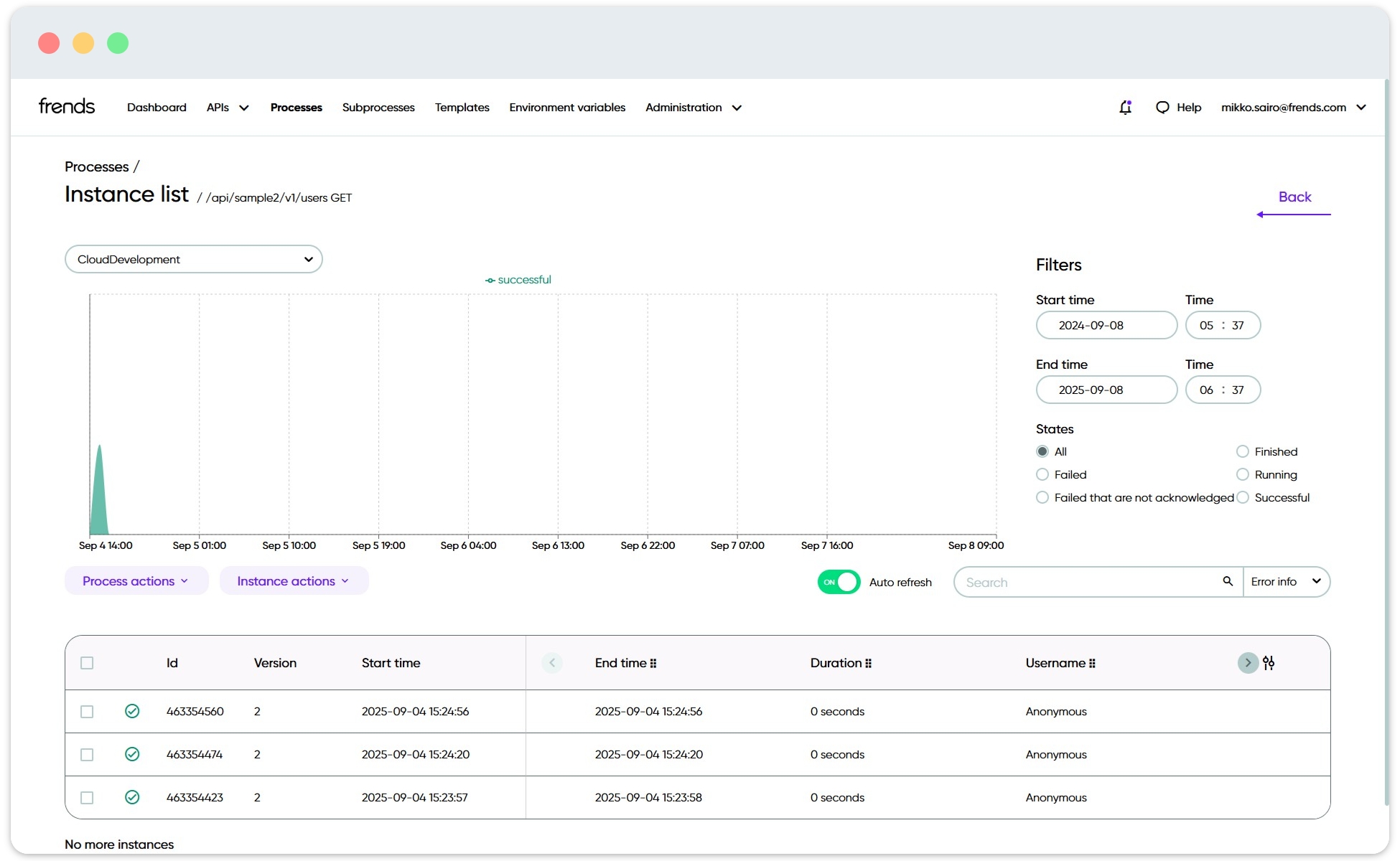 Displayed name for the Process in Frends UI. Has to be unique within the Frends Tenant, but can be changed whenever if necessary.